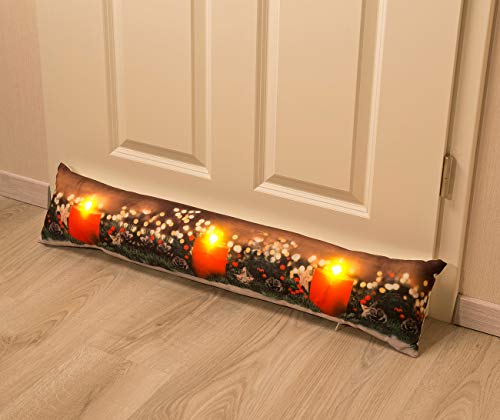 infactory Dekokissen: Zugluftstopper-Deko-Kissen mit Kerzen-Motiv, 3 LEDs, 90 x 20 cm (Zugluftstopper-Türstopper, Zierkissen, Dichtung)