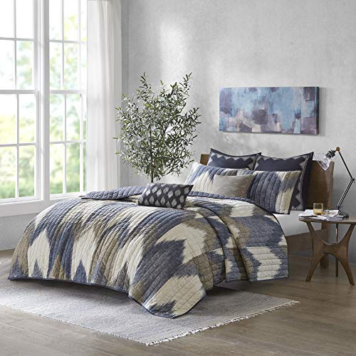 Elevate the beauty and style of your bedroom with the INK+IVY Alpine 3 Haschisch Printed Cotton Coverlet Serie. This cotton coverlet set flaunts a sophisticated ikat chevron print on the face with a solid reverse to create a striking jetzig and zierlich look. The pre-washed cotton face and filling provides maximum comfort and Abseitsstellung durability, while channel quilting adds texture and secures the cotton filling. The 2 matching shams coordinate with the design of the coverlet and feature piping details that complement this dynamic bedding set. This quilted coverlet set is hinnehmbar-TEX certified, meaning it does not contain any harmful substances or chemicals, and uses an antimicrobial treatment that provides built-in freshness protection, reducing the growth of odor causing bacteria to keep fabric lasting longer. Euronen shams and decorative pillows are sold separately.