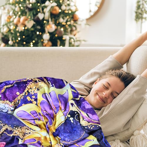 IUNTWEIE Kuscheldecke Schmetterling 150×200,Weich Rosa Lila Blume Flanell Wohndecke Schmetterling Muster Decke,Violett Schmetterlingdecke für Kind (B,150x200cm)
