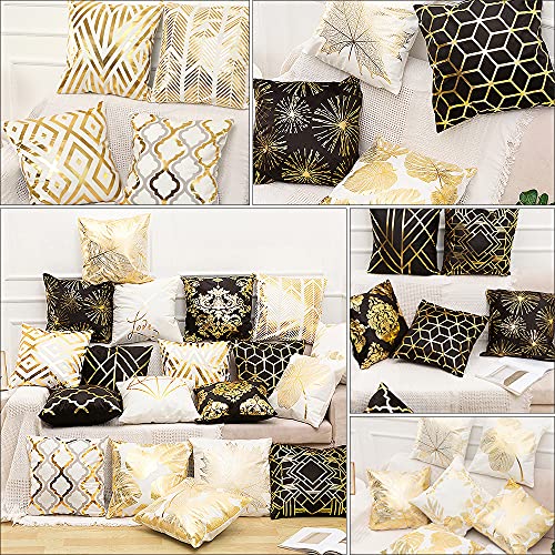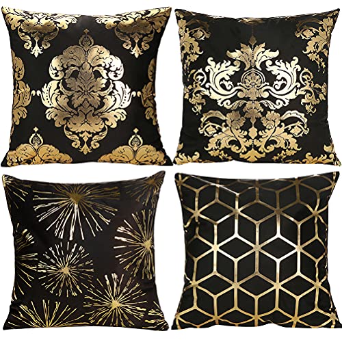 🍁[Kissenbezüge Größe]–4 Ausschnitt 45 * 45cm Schwarz Gold Kissenbezug ist durch und durch, kann die Größe des Kissens in Ihrem Haus, (ohne Kissen) Schwarz Gold Kissenbezug zusammenbringen, einfach, das Sofa oder das Bett zu verzieren und eine festliche Atmosphäre verursachen.