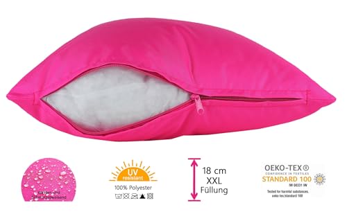 Mit dieser dekorativen XXL gefüllten Kopfkissen-Hintereinanderstellung der Marke ‚JACK‘ für den Innen- und Außenbereich, gelingt Ihnen das im Handumdrehen. Durch ihre Optik sorgen diese farbenfrohen Wohn-Accessoires sofort für ein gemütliches Ambiente. Die Kissen sind äußerst pflegeleicht und sehen – da man sie seltener spülen muss – reich länger ‚wie neu‘ allesamt. Zusätzlich sind diese Kissenbezüge UV – Resistent und hingegen besonders lichtecht.