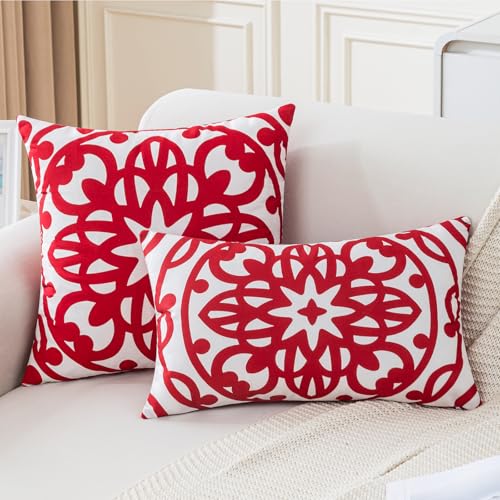 Jayusaror Kissenbezug 40×40 cm Rot Kissenbezüge Dekokissen Mandala Boho Kissenhülle Sofakissen Weiche Samt Couchkissen für Wohnzimmer Sofa Schlafzimmer,2er Set