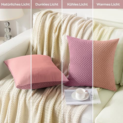 JELLYMONI Kissenbezüge 40x40cm 2er Set Rosa Kissenhülle Gestreift Polyester Zierkissenbezüge mit Reißverschluss Dekokissen Sofakissenbezug Wurfkissenbezug Deko für Sofa Wohnzimmer (KEIN Einsatz)