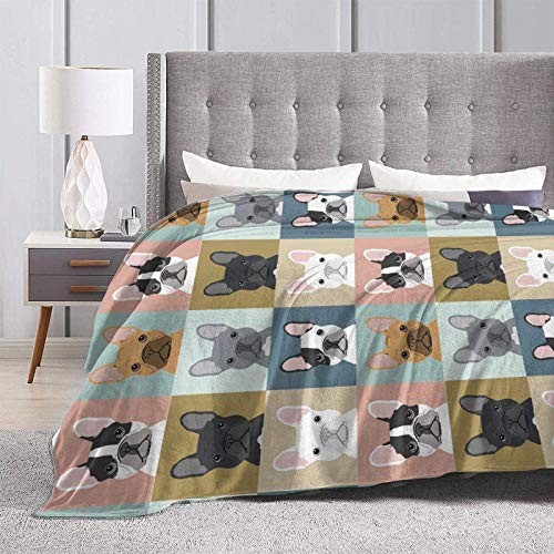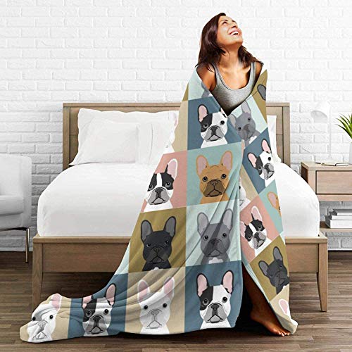 jiele Druckdecke 3D Französische Bulldogge Hund Süße ultraweiche Fleecedecke Flanell Samt Plüsch Decke 150 x 200 cm