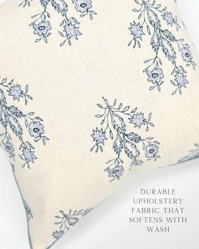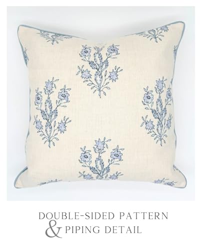 Verschönern Sie Ihr Wohnzimmer oder Schlafzimmer mit unserem Maria-Kissenbezug. Styling einfach gemacht! Die Maria passt zu unseren Norfolk-, Chesapeake- und Greenwich-Kissen. Hergestellt aus einer strapazierfähigen Baumwollmischung, sind unsere Kissen für erschwingliche Haltbarkeit und Stil konzipiert. Das Kissen ist ca. 66 x 66 cm groß und verfügt über ein hellblaues Blumen-Design auf einem cremefarbenen Hintergrund, mit einfarbiger blau-grauer Paspelierung. Versteckter Reißverschluss für nahtlose Eleganz. Zum Abwaschen bitte in kaltem Wasser im Schonwaschgang Abwaschen. Nicht bügeln oder bleichen. Zum Reiben flach hinlegen. Vor der Landbau sehen Sie sich bitte alle unsere Produktbilder und Videos für das genaue Blau der Blumen und des Hintergrunds an. Außerdem empfehlen wir einen 71,1 cm großen Dauneneinsatz für unser Kissen.