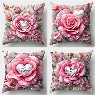 Jinmer Rosa Rosen Kissenbezug 4er Set 65x65cm Blumen Dekoration Samt Kissenbezüge Moderne Mode Kissenhülle für Sofa Schlafzimmer Couch Outdoor Dekokissen