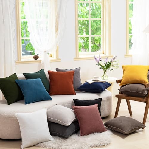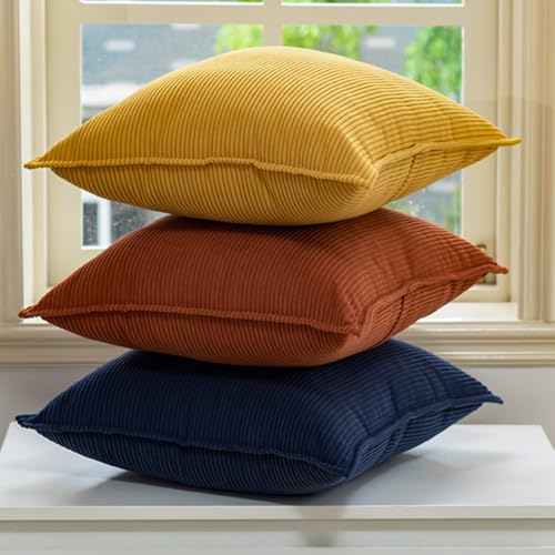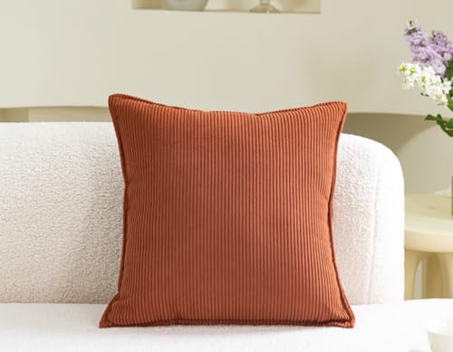 JOSVRAC Dekokissen aus Kordsamt, quadratisch, gestreift, für Wohnzimmer, Sofa, Bett, Schlafzimmer, Heimdekoration, Garten, Dekoration, Couch, Kissenbezug, Orange, 40 x 40 cm, 4 Stück