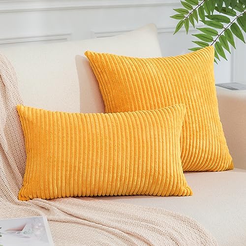 JOTOM 2er Set Cord Kissenbezüge Kissenhülle Dekorative Zierkissen Sofakissen Couchkissen Dekokissen Kissenbezug Deko Kissenhülle für Sofa Wohnzimmer 30x50cm Orange Gelb