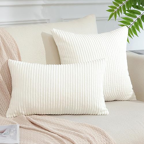 JOTOM 2er Set Cord Kissenbezüge Kissenhülle Dekorative Zierkissen Sofakissen Couchkissen Dekokissen Kissenbezug Deko Kissenhülle für Sofa Wohnzimmer 40x60cm Beige