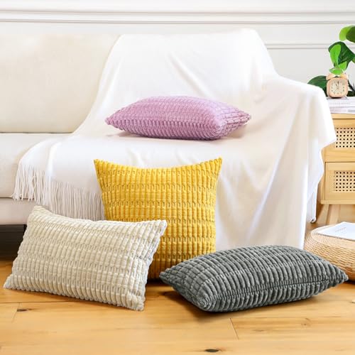 【Hochwertig Material】Die Kissenbezüge sind aus hochwertigem Kordsamt gefertigt. Das einzigartige Streifenmuster verleiht diesen Kissenbezügen eine schönen Aussehen.