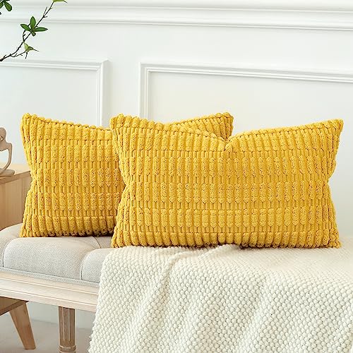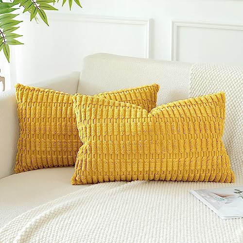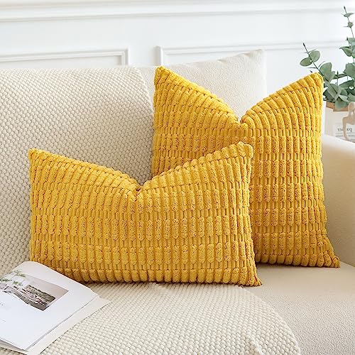 JOTOM 2er Set Kordsamt Weicher Kissenbezüge Moderne Kissenhüllen Dekorative Sofakissen Dekokissen Zierkissenbezug für Wohnzimmer Sofa Schlafzimmer Gelb 40×60 cm