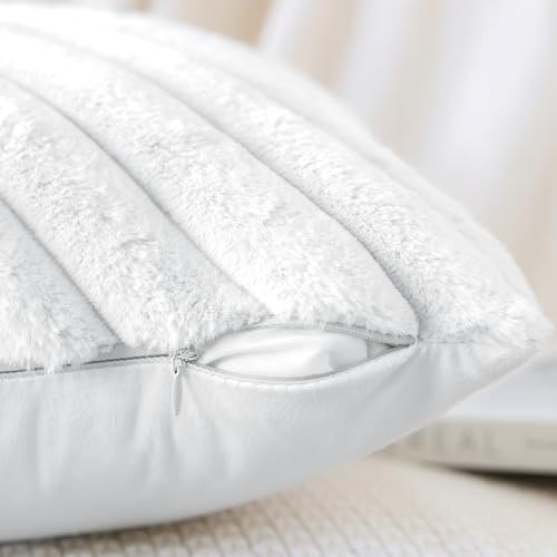【Weiches Pelz Material】:Der Kissenbezug ist flauschig und weich faux Kaninchenpelz gestreift, kein Materialabwurf.Super weiches Kunstfell, glatt und gemütlich Nicht verblassen resistent. Ein versteckter eingebauter Reißverschluss an der Seite der Kissenhüllen. Dieses durchdachte Design ermöglicht ein einfaches Einsetzen und Abhängen des Kissens.