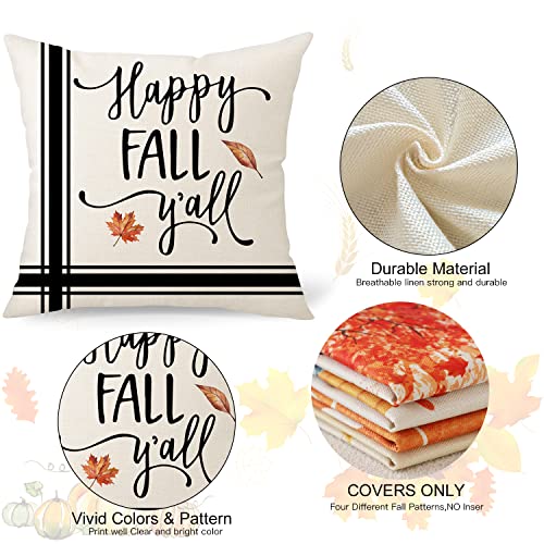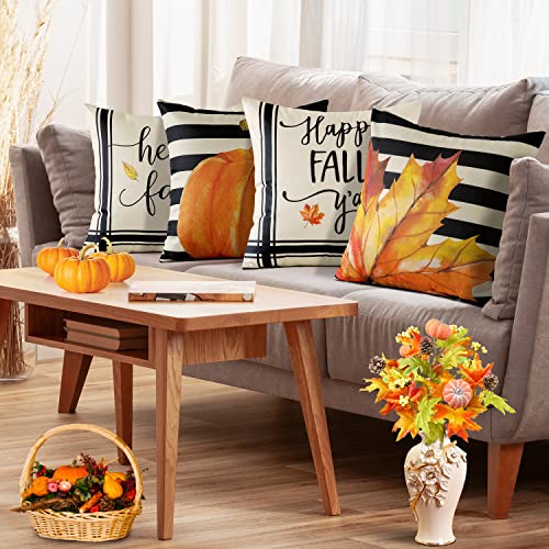 JOTOM Dekorative Kissenbezug Atmungsaktiv Kissenhülle Bunte Dekokissen Sofakissen Bezug Auto Home Bed Büro Cafe Garten Outdoor 45 x 45 cm 4er Set (Herbst Kürbis Ahornblatt, 45 x 45 cm)