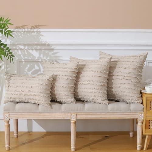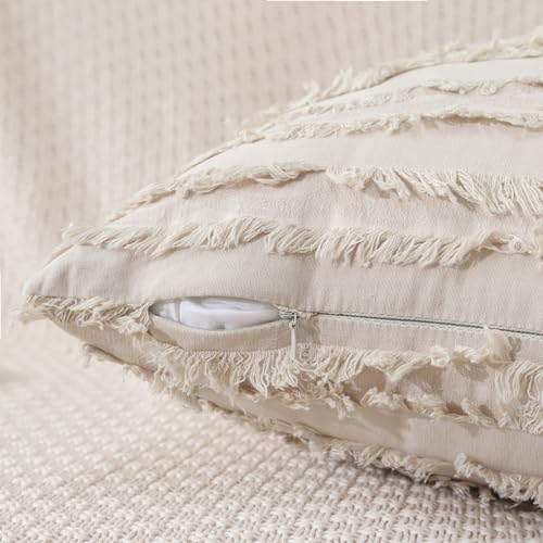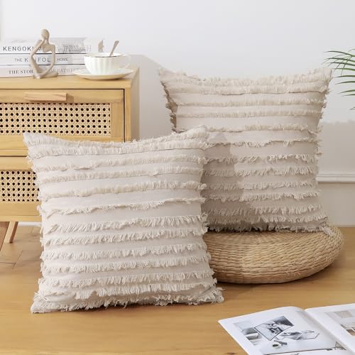 JOTOM Dekorative Kissenbezug mit Tassel Boho Fransen Dekokissen Bezug Weich Kissenbezüge Quaste Dekor Kissenhülle für Sofa Schlafzimmer Wohnzimmer 2er Set (45 x 45 cm, Beige)