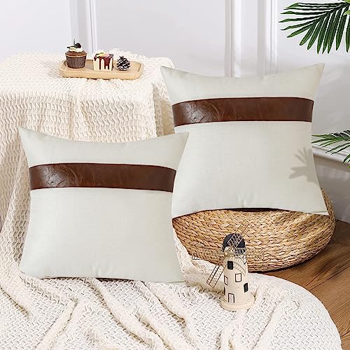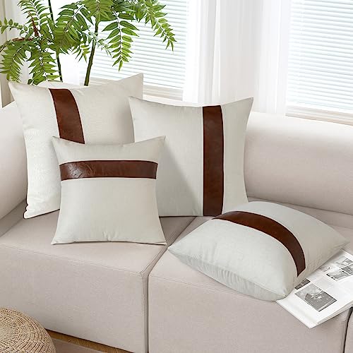 JOTOM Kissenbezüge Dekorative Leinen Leder Kissenbezug Geometrische Stil Dekokissen Sofakissen Kissenhülle für Couch Sofa Outdoor (40 x 40 cm, Weiß B)