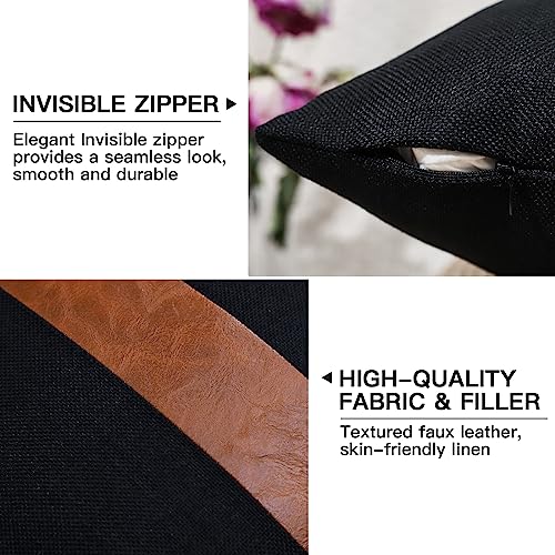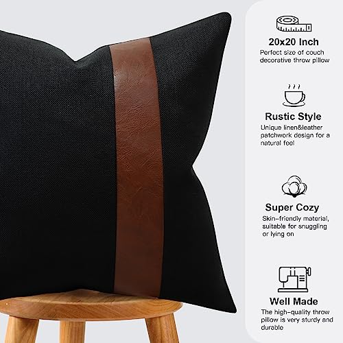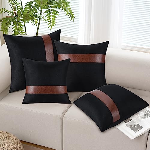 JOTOM Kissenbezüge Dekorative Leinen Leder Kissenbezug Geometrische Stil Dekokissen Sofakissen Kissenhülle für Couch Sofa Outdoor (50 x 50 cm, Schwarz B)