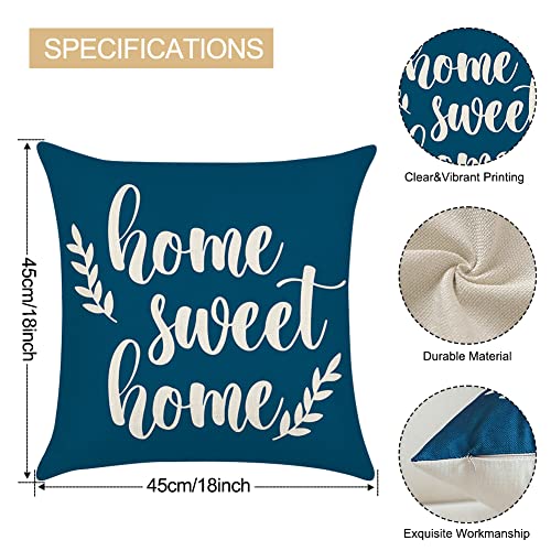 JOTOM Kissenbezug Home Sweet Home Brief Dekorativ Kissenhülle Haus Dekokissen für Haus Schlafzimmer Sofa Stuhl Bett Garten 45X45cm (Hellblau)