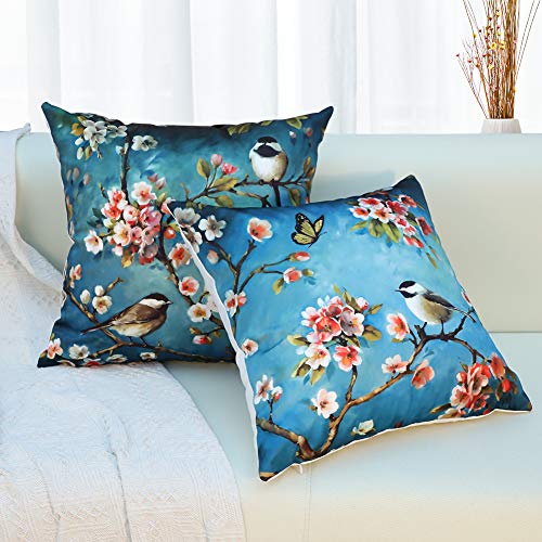 JOTOM Kissenhülle mit Motiven, für Haus, Wohnzimmer, Sofakissen, 45 x 45 cm, 2 Stück (Vogel)