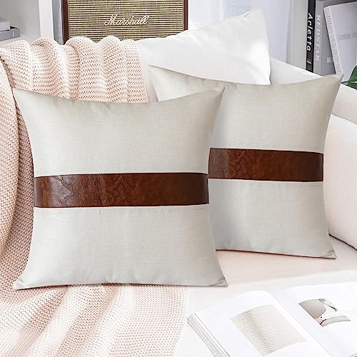 Luxuriöse Kissenbezüge 114 x 114 cm: Moderner Kissenbezug, 45 x 45 cm, 2er-Set. Die Leinen-Patchwork-Kunstleder-Kissenbezüge verleihen Ihrem Zimmer eine so tolle Landschaft.