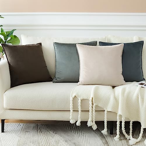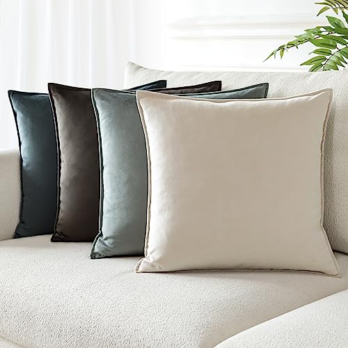 JOTOM Samt Kissenbezug 45×45 cm 4er Set Farbverlauf Serie Dekorative Dekokissen Sofakissen Kissenhülle für Bett Sofa Schlafzimmer Wohnzimmer Balkon (45x45cm, Graue Serie)