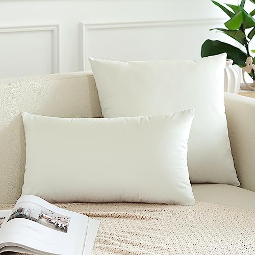 JOTOM Samt Kissenbezug Kissenhülle Sofakissen Dekokissen Kissenbezüge für Sofa Wohnzimmer Schlafzimmer 2er Set 40×40 cm Beige