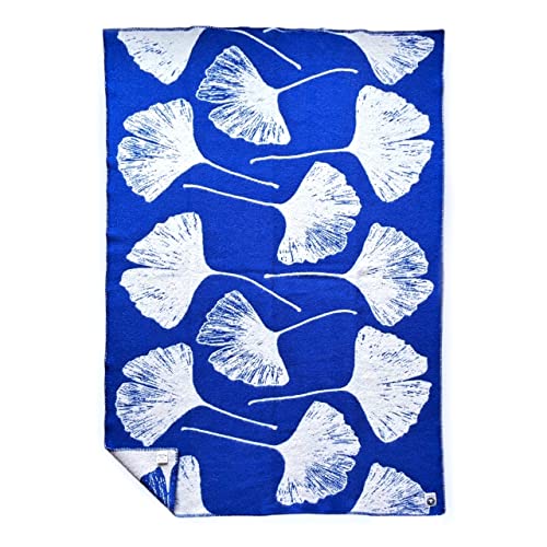 JOWOLLINA Wendedecke Wolldecke Plaid Kuscheldecke Öko-Wolle 130×200 cm, Ginkgo (Princess Blue)