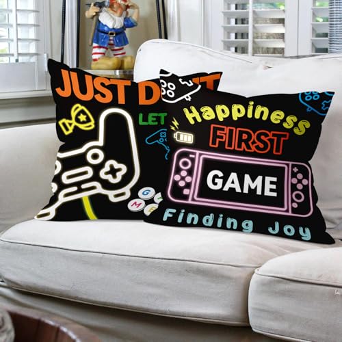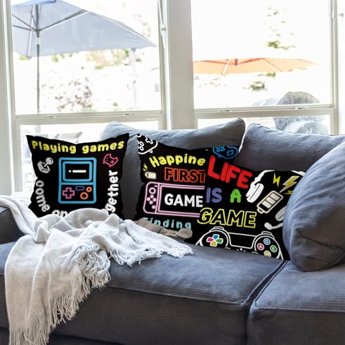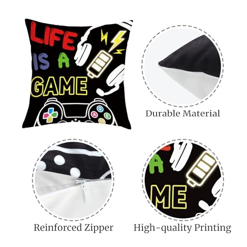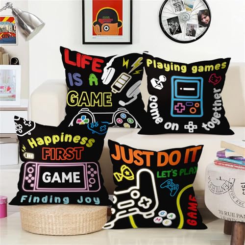 Joymaison Kissenbezüge 45×45 cm 4er Set Gamer Videospiel Dekorative Kissenbezug Gaming Spieler Deko Kissenhülle für Gaming Deko Zimmer Jungen Schlafzimmer