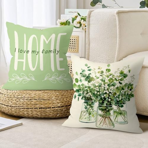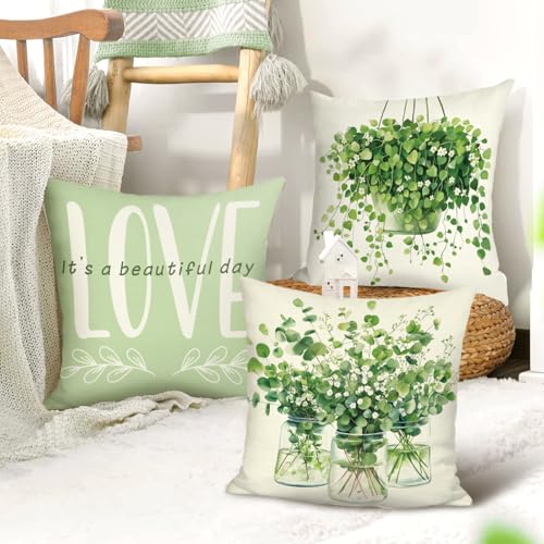 Joymaison Kissenbezüge 45×45 cm 4er Set Sommer Grün Blätter Dekorative Kissenbezug Grün Pflanzen Frühling Deko Kissenhülle für Sofa Couch Schlafzimmer Wohnzimmer