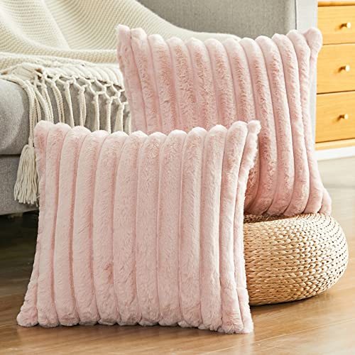 Joyouth 2er Set Doppelseitige Plüsch Samt Kissenbezüge Weiche Künstliche Pelz Kissenbezüge Dekorativ für Couch Sofa Schlafzimmer Wohnzimmer Zuhause 40×40 cm Rosa