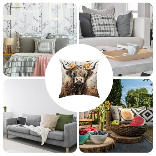 【Reich Design】 Nahtlos verbessert die Schönheit und den Komfort jedes Raumes, dieser Kissenbezug mit Hochlandkuh ist vielseitig einsetzbar wie Sofa- oder Nachttischkissen und dient vulgo wie schicker Kissenbezug
