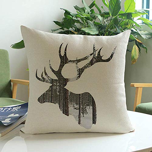 JWEK Kissenbezug 5-teiliges Set Weihnachten Rentierkopf Dekoration Sofa Kissen Sofa Creme Leinen Hirsch Animal Print Hug Kissenbezug 45X45Cm