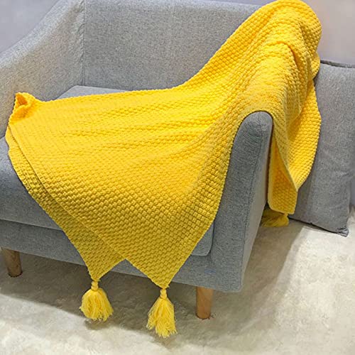 JYSSH Kuscheldecke Strickdecke, Extra Weich Warm Fleecedecke Schlafdecke, Dünne ​Wohndecke Mit Quaste als Sofaüberwurf oder Bettüberwurf Blanket,Yellow-71x79in/180x200cm