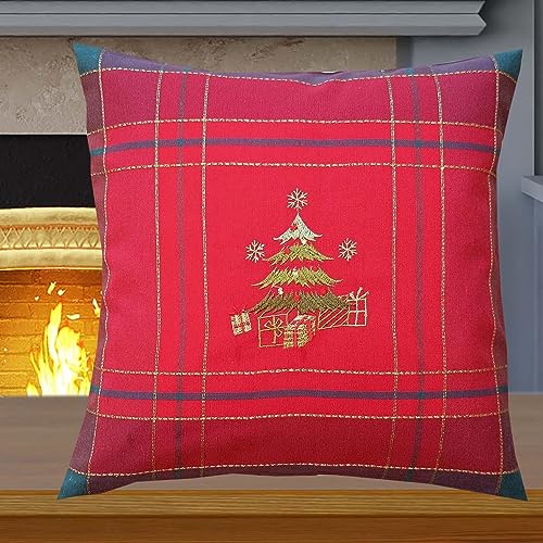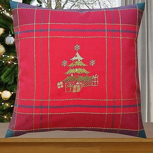 KAMACA Kissenbezug Kissenhülle 40×40 cm Filigrane Stickerei Eyecatcher in Herbst Winter Weihnachten (Weihnachtsbaum)
