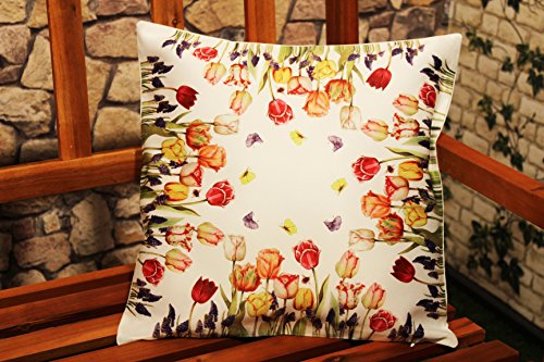KAMACA Kissenbezug TULPEN UND Schmetterlinge hochwertiges Druck-Motiv mit Blumen EIN Eyecatcher in Frühling Sommer (Kissenhülle 40×40)