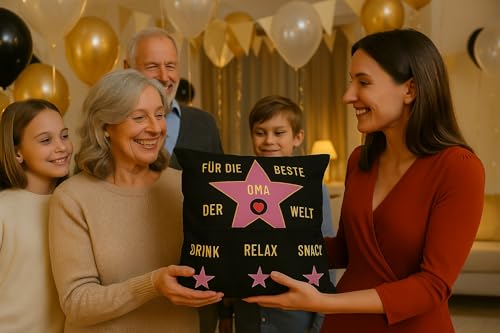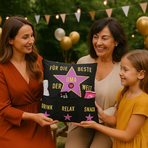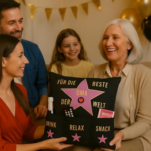 KAMACA Originelles Dekokissen Kissen mit 3 Taschen zum selber Befüllen Größe 43×43 cm tolles Geschenk (Beste Oma)