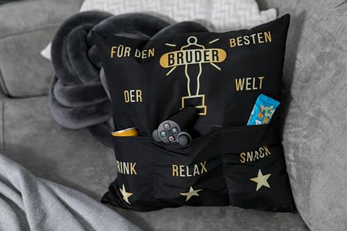 KAMACA Originelles Dekokissen Kissen mit 3 Taschen zum alleine Befüllen Größe 43×43 cm tolles Geschenk stattdessen einen lieben Menschen