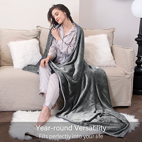 KANKAEU Kuscheldecke Flauschig 200×230 cm, 380GSM Superweiche & Zarte Fleecedecke, Flauschige Decke, Wohndecke Kuscheldecken als Sofadecke, Flanelldecke, Couchdecke, Mittelgrau