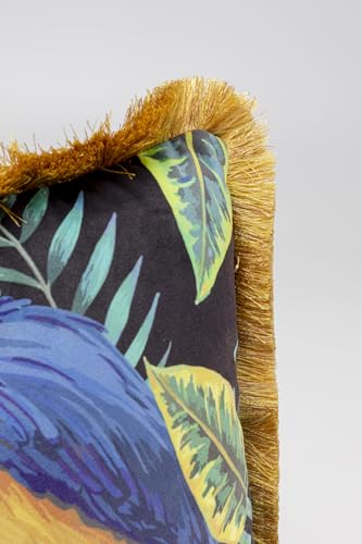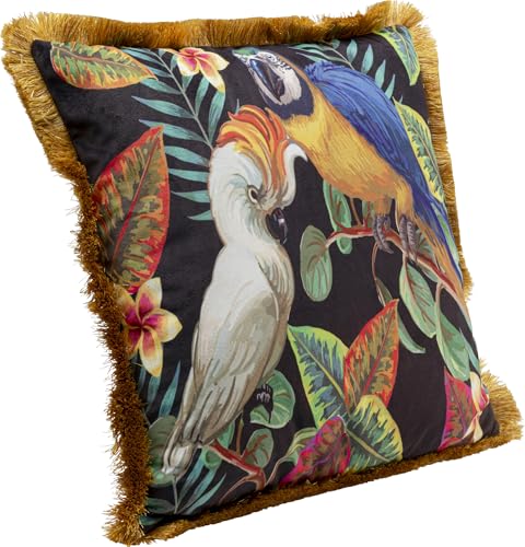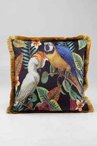 Kare Design Kissen Birds Paradise, Mehrfarbig, Papageien Motiv, Samtoptik, mit Fransen, Zierkissen mit Füllung, Dekokissen mit Reißverschluss, Sofakissen, 45x45cm (L/B)
