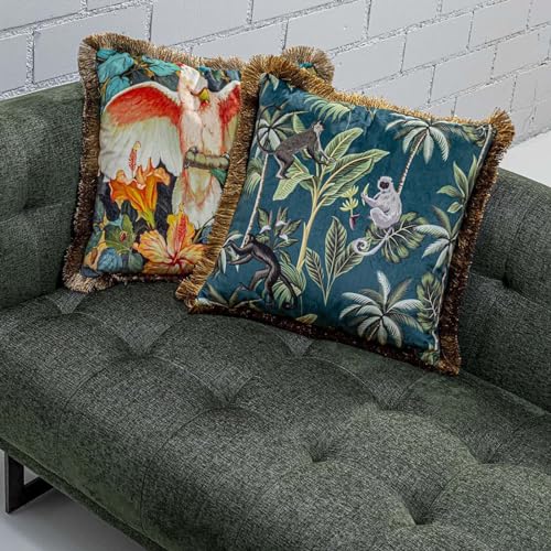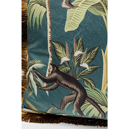 Kare Design Kissen Jungle Fever Gold/Blau, mit Fransenkante, Dekokissen mit Füllung, mit Reißverschluss, Wurfkissen, Dschungel Motiv, Zierkissen, Sofakissen, Abnehmbarer Bezug, 45x45x15cm
