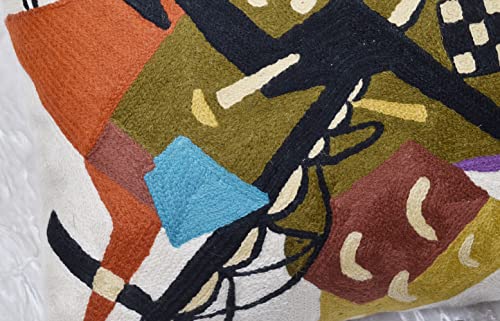 👍 Moderner Überwurf-Kissenbezug – von Hand bestickt: Diese farbenfrohen dekorativen modernen Kissenbezüge sind von der Kunst von Kandinsky inspiriert und werden von den feinsten Handwerkern in weicher Wolle von Hand bestickt. Eine Nahansicht dieses komplett modernen Akzent-Kissenbezugs ermöglicht es Ihnen, die erstaunliche feine Kettenstich-Handstickerei zu sehen. Ein perfektes modernes Sofakissen für Ihre moderne Couch.