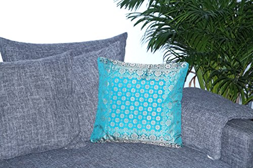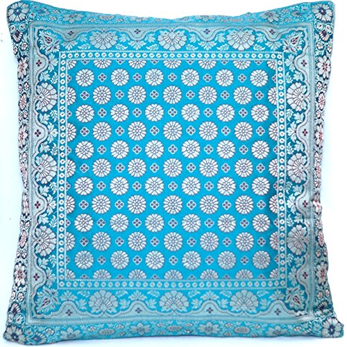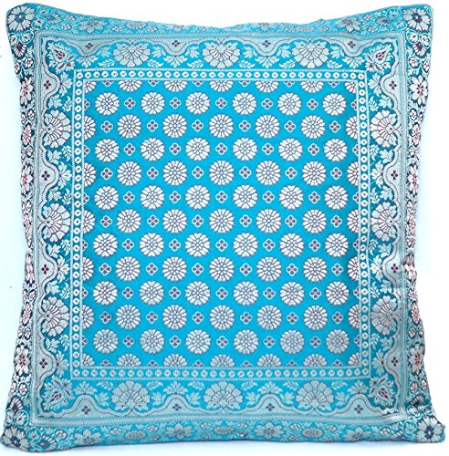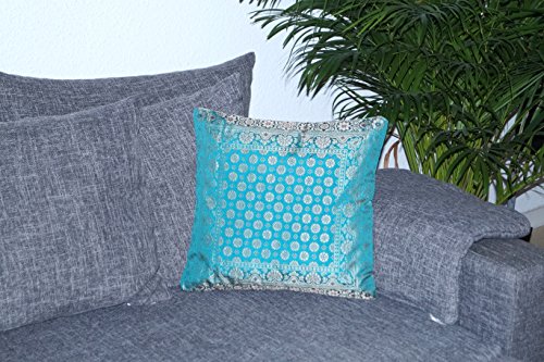 Größe: 1 x Indische Banarasi Seide Kissenbezug 40 cm x 40 cm mit Reißverschluss
