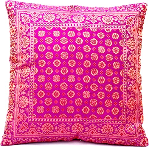 Größe: 1 x Indische Banarasi Seide Kissenbezug 40 cm x 40 cm mit Reißverschluss
