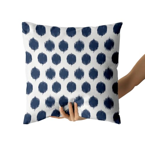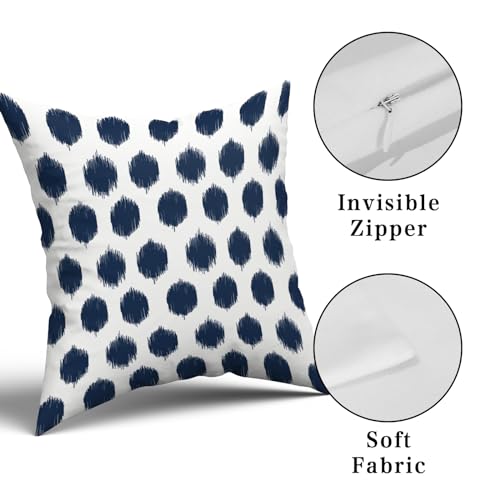 Hochwertige Stoffe: Marineblau-weiße gepunktete Kissen mit marineblau-weißen Punkten sind aus reiner Baumwoll-Polyester-Mischung, die einen unsichtbaren Reißverschluss hat, doppelseitiger Beule, einfaches und elegantes Design. Der marineblaue Kissenbezug ist bequem und freundlich zu Ihrer Haut oder Haustieren. Unauslöschlich nach dem Waschen.