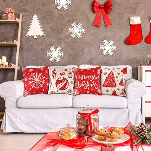 4 PCS Kissenhülle in rot ferner beige, die Gesamtheit Leinen, ca. 45 x 45 cm; Nicht enthalten den Kissenkern