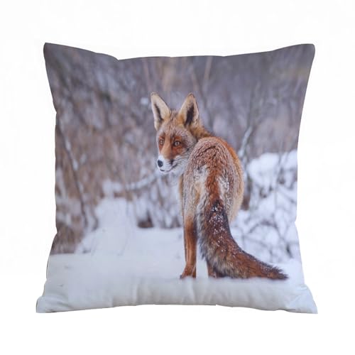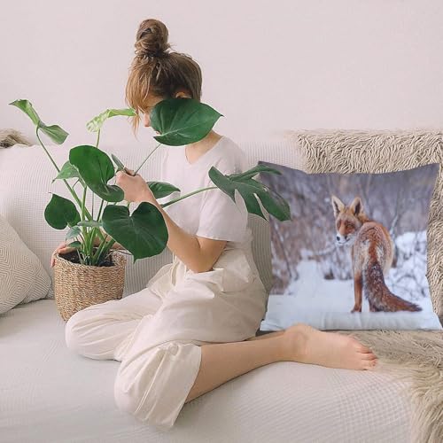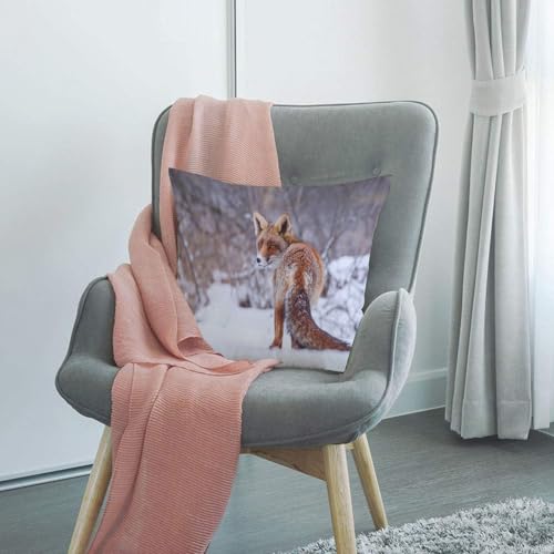 KHWEJ Kissenbezüge 40×40 cm,Fuchs, Landschaft Schnee Landschaft Pelzigen Wildtier Jagd Vulpine Kalten Winter Druck,Zierkissenbezug Cushion Cover Couch Wohnzimmer Außenbereich Deko