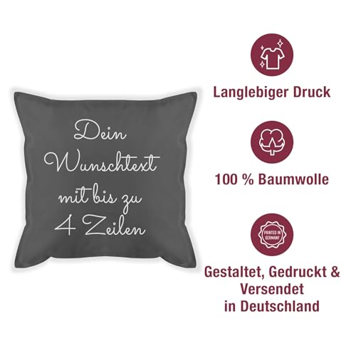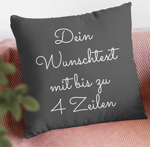Kissen 50×50 – Aufdruck selbst gestalten – Wunschtext – 50 x 50 cm – Grau – personalisierter selber Bedrucken Kissenbezug Lassen personalisiertes Text frei wählbar Pillow Schrift 4 zeilen schreiben