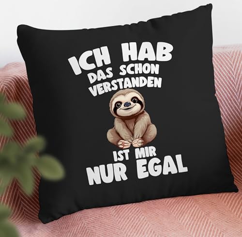 Kissen 50×50 – Ich hab das schon verstanden ist mir nur egal I Lustiger Spruch Faultier – 50 x 50 cm – Schwarz – habe mit füllung sloth lustige sprüche is es verstanden, ein drauf egal. aber