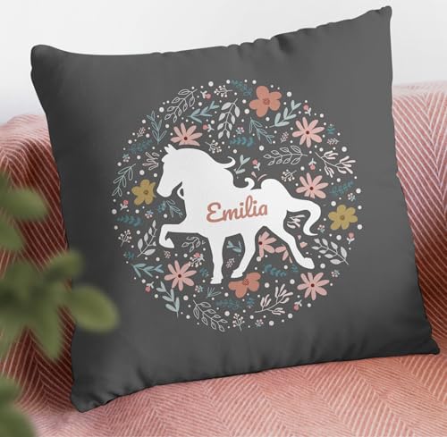 ✔️ PFERDEMOTIV: Niedliches Motiv mit Pferd, Blumen und Wunschname für Kinder