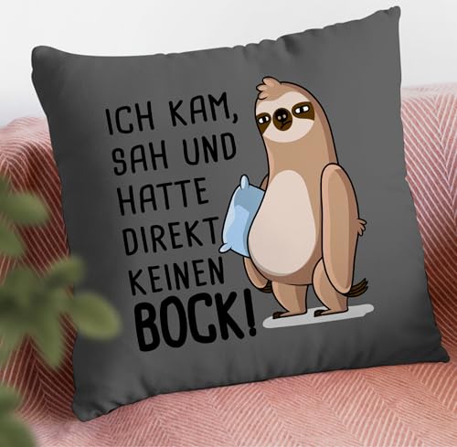 Motivation Design: Sehnst du dich nach etwas ganz Besonderem? Mit dem Statement-Look bringst du dich und andere garantiert zum Strahlen. Das witzige Motiv überzeugt alle, die nach „ich kam sah keinen bock“ abweiden und passende Statement Kissen abweiden.