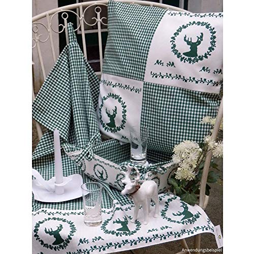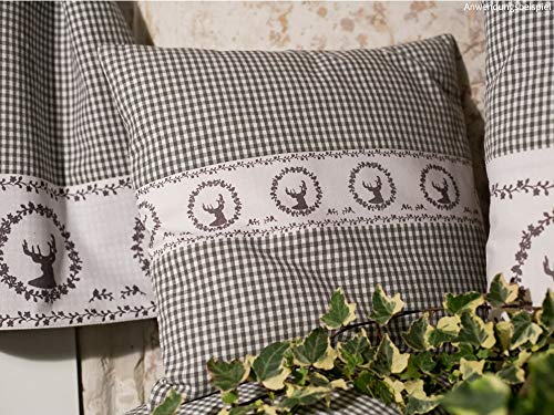 Kissenüberzug / Kissenhülle RESI kariert & Hirsch Bordüre Landhaus-Stil in grau